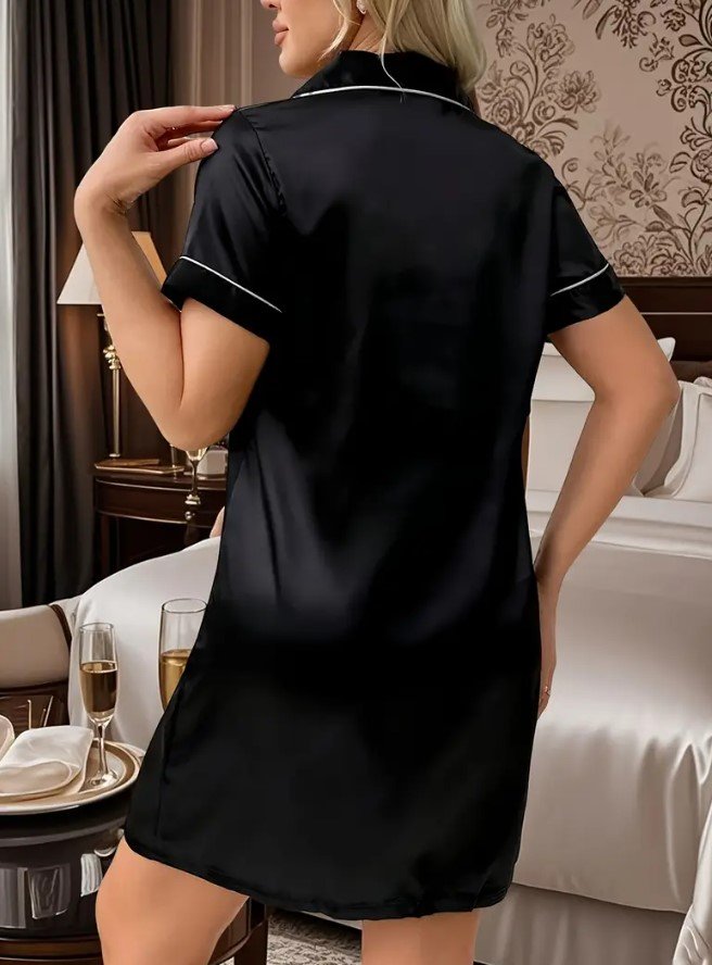 Nuestra camisola estilo camisa combina el encanto clásico con la suavidad del satén, creando una prenda que invita al descanso con sofisticación y confort.