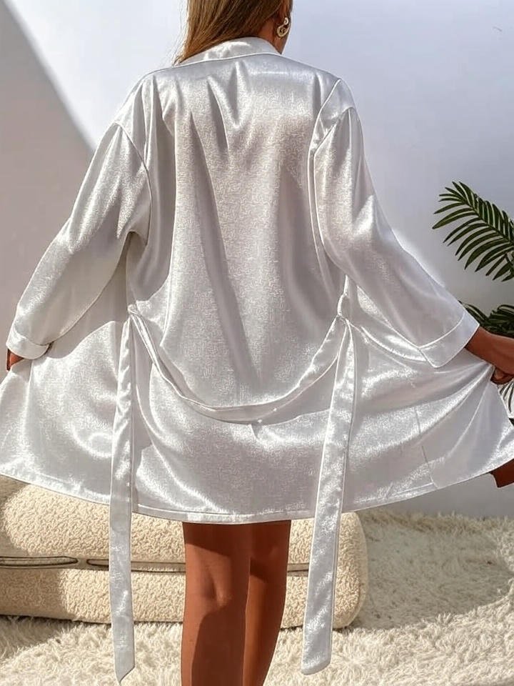 ✔️ Bata de satén a juego, ligera y elegante, con cinturón para definir tu silueta.
