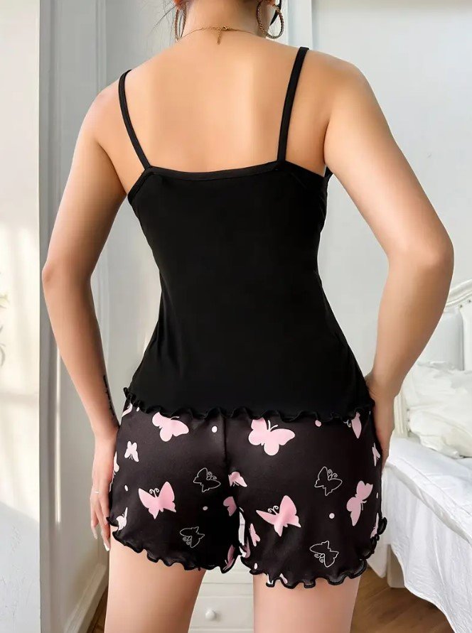Pijama Modal Negro Mariposas Rosas