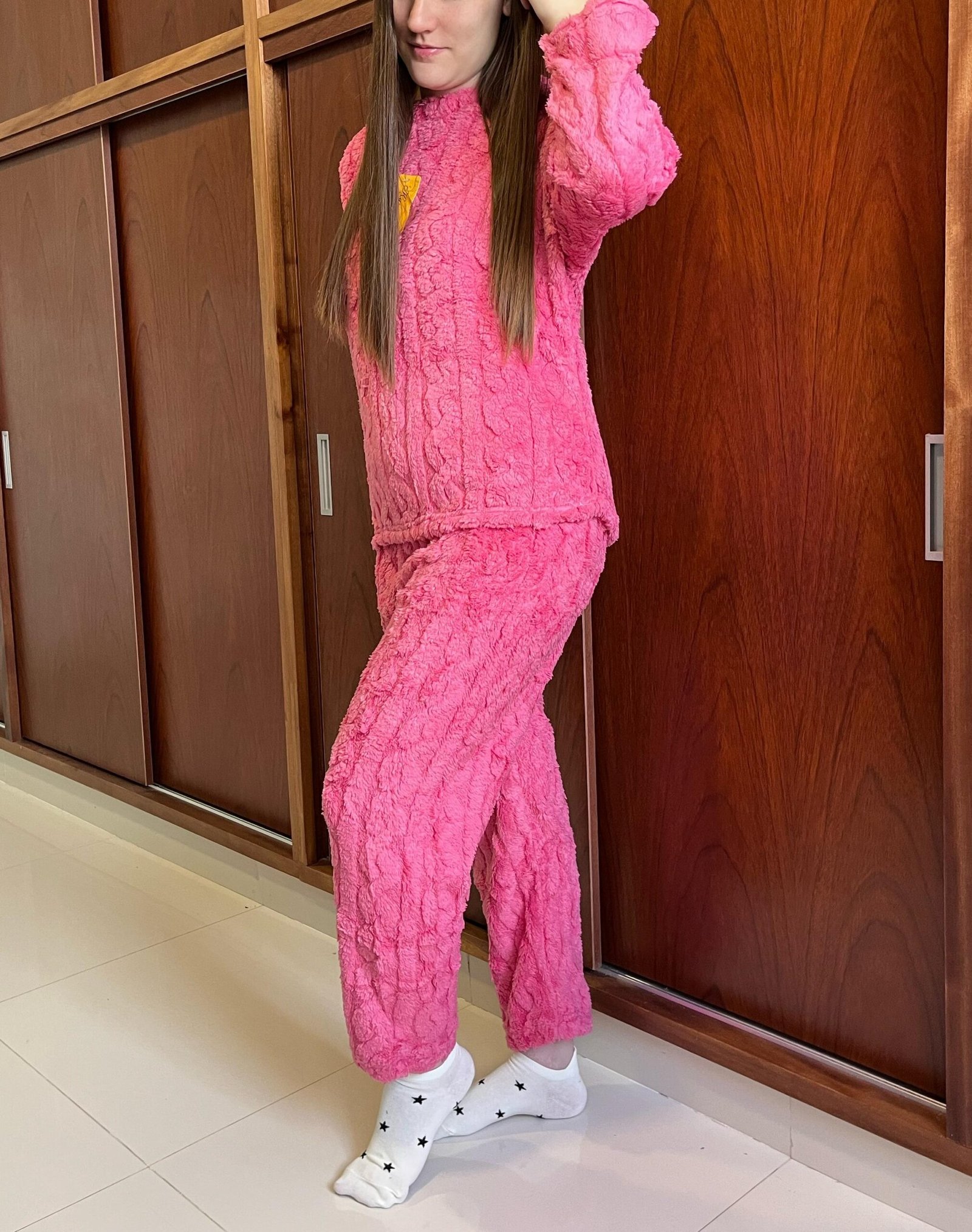 Sumérgete en la comodidad absoluta con nuestro pijama peluche, ideal para mantenerte abrigada y cómoda en los días fríos. Su textura ultra suave y su diseño acogedor te brindarán el descanso que mereces.
