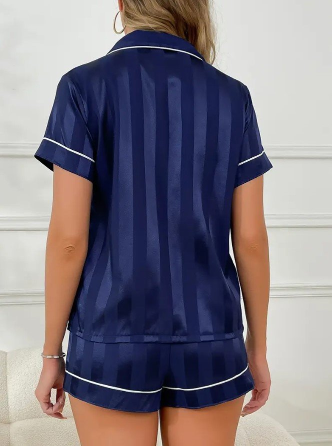 Disfruta de noches de lujo con nuestro pijama de satén con short y camisa de botones, diseñado para quienes aman la comodidad sin perder el estilo. Su tela suave y sedosa se desliza delicadamente sobre la piel, brindando una sensación fresca y ligera para un descanso placentero.