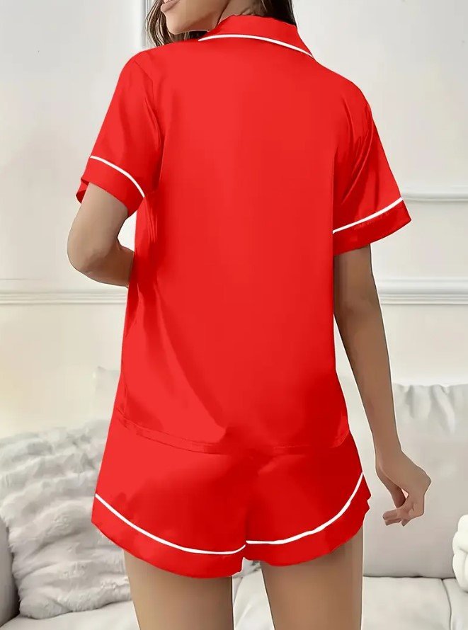 Pijama Satén Corto – Rojo liso