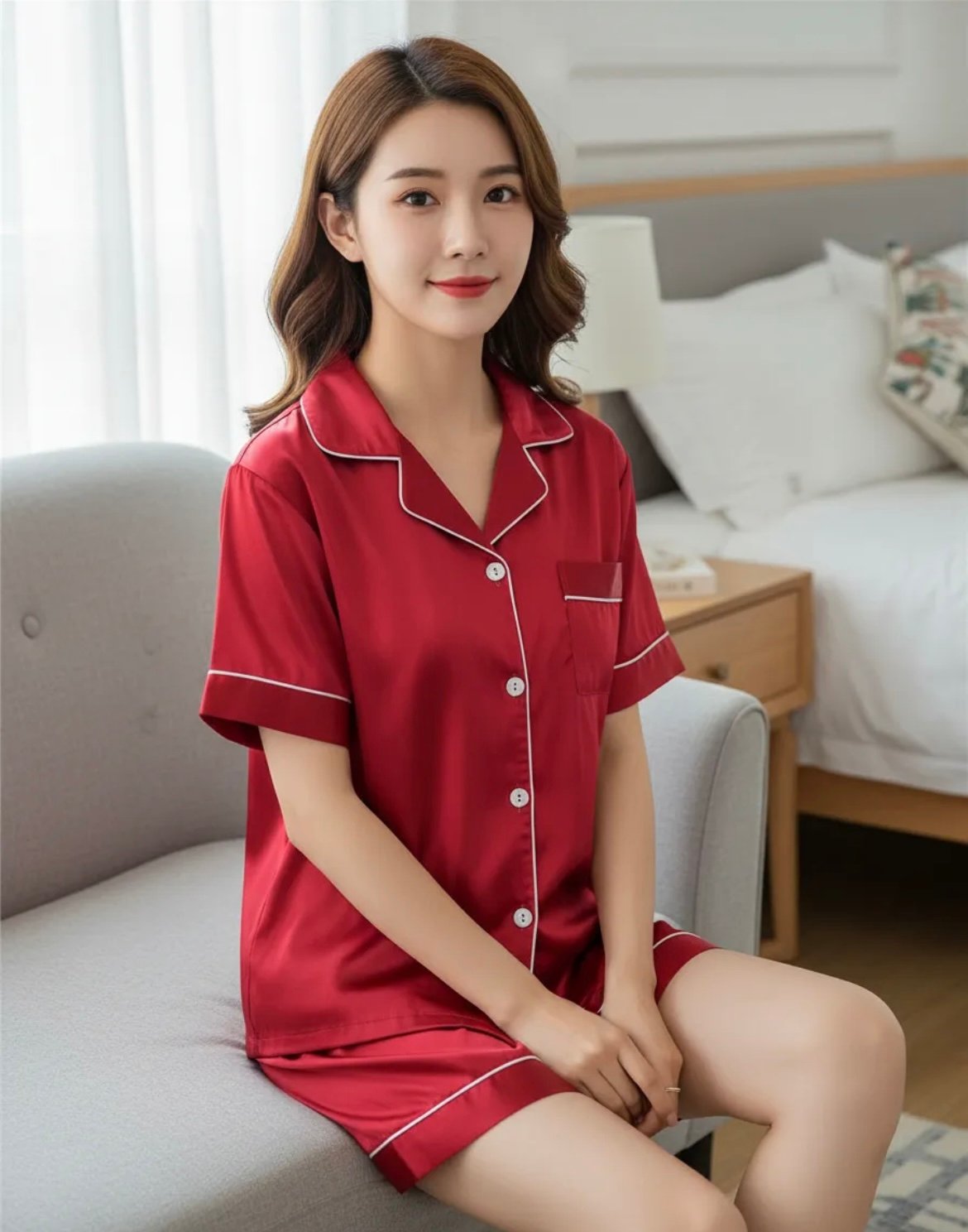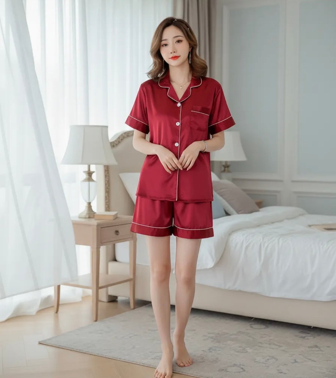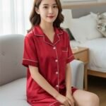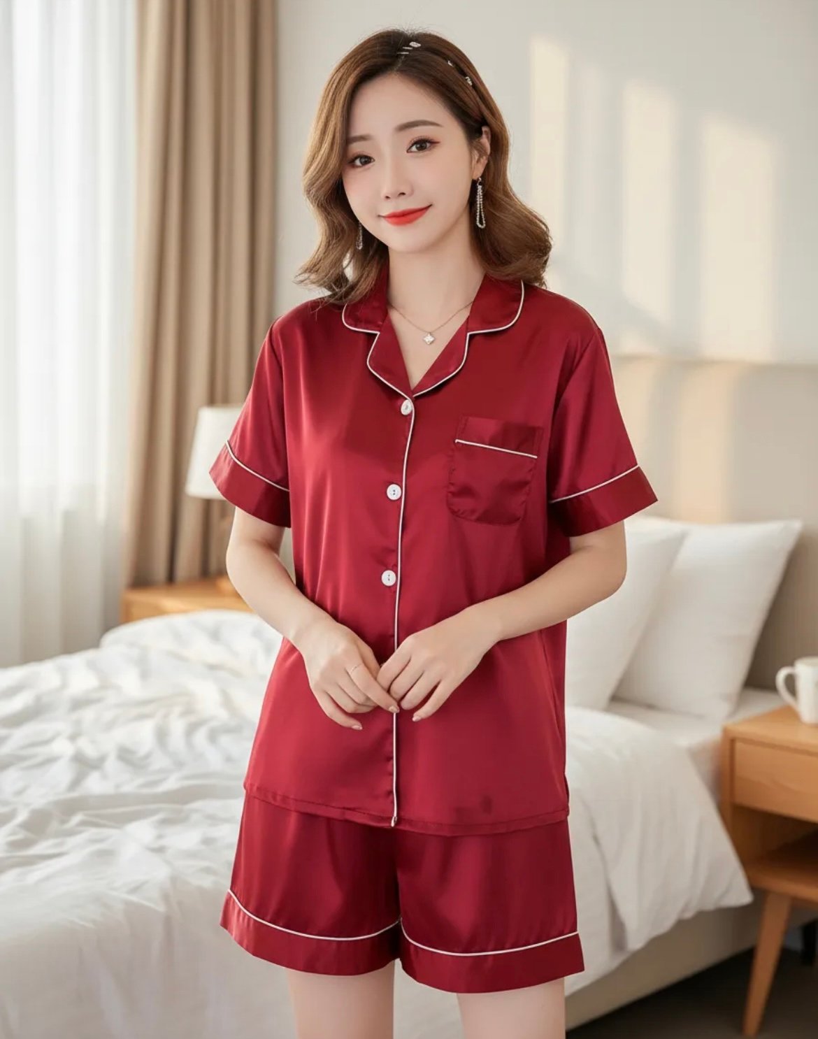Pijama Satén Corto – Rojo Oscuro